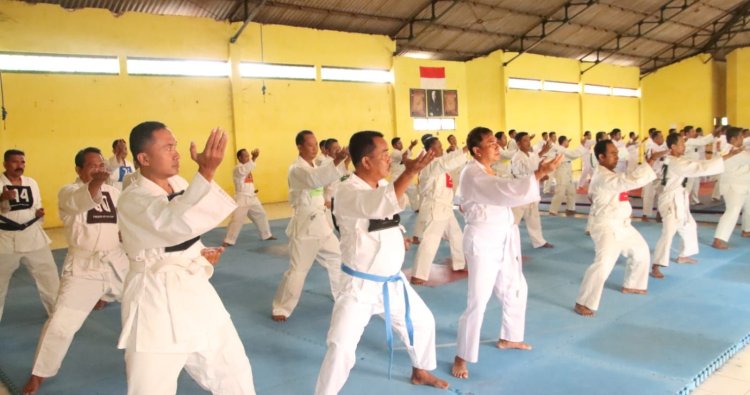 SUMENEP - Sebanyak 78 personel Polres Sumenep mengikuti Ujian Beladiri Polri sebagai syarat untuk Usulan Kenaikan Pangkat (UKP) Periode 1 Januari 2025. Kegiatan ini berlangsung selama 4 hari mulai tanggal 10 - 13 November 2025, di Gedung Koni Desa Pabian Kecamatan Kota Sumenep, Kabupaten Sumenep.